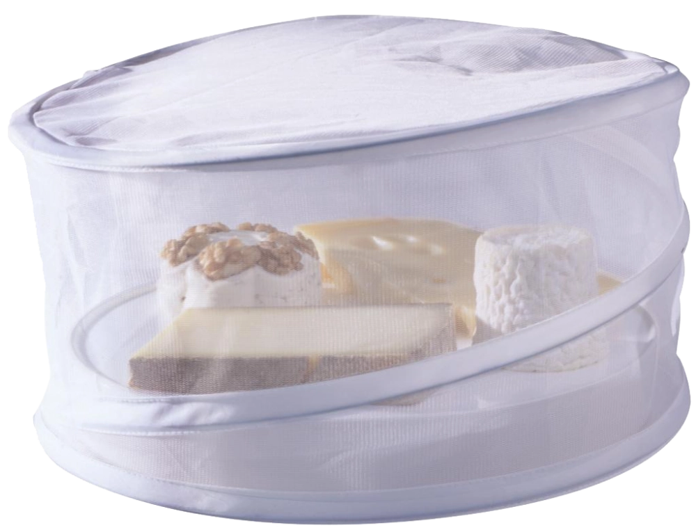 Эффективно защищает сыр и другие продукты. Для легкого хранения его просто нужно сложить и застегнуть на пуговицу.