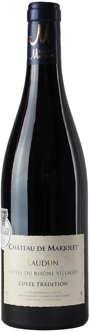 Красное сухое вино Chateau de Marjolet, Cotes du Rhone Villages Laudun "Cuvee Tradition" изготовлено из винограда двух сортов — Гренаш и Сира, выращенного на небольшом винограднике площадью в 6,5 гектаров. Средний возраст лоз составляет около 25 лет. Ферментация длится от 3 до 4 недель при строго контролируемой температуре. Затем вино выдерживается 12 месяцев в терморегулируемых резервуарах. Потенциал хранения вина составляет 10 лет.