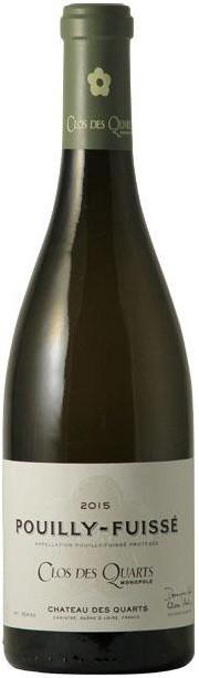 Утонченное, освежающее белое вино Pouilly-Fuisse "Clos des Quarts" AOC создано из винограда сорта Шардоне. Треть ягод для него была собрана с лоз, посаженных в 1917 году, остальные две трети — с более молодых, возрастом 62-67 лет. Грозди отправились на дробление целиком, проходили сбраживание собственными "дикими" дрожжами и малолактическую ферментацию в новых бочках. Окончательное 18-месячное дозревание вина прошло в старых дубовых бочках. Пить это вино специалисты рекомендуют в 2019-2022 годы.