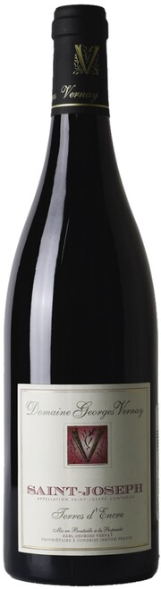 Элегантное вино Saint-Joseph "Terres d'Encre" от Домена Жоржа Верне производится из винограда сорта Сира, выращенного в апелласьоне Сен-Жозеф. Виноградники занимают площадь в 1,5 га и располагаются в коммуне Шаване. Глинистая, богатая оксидом железа почва виноградника очень подходит для винограда сорта Сира, из которого впоследствии получаются темные, насыщенные, танинные вина. Средний возраст лоз составляет 25 лет. Плотность посадки: 7 000 лоз/га. Урожай собирается вручную в небольшие лотки и отправляется на винодельню, где дестеблируется. Ферментация проходит в емкостях из нержавеющей стали при контролируемой температуре в течение 2-3 недель. Затем вино выдерживается в дубовых бочках 10-12 месяцев. Потенциал хранения вина составляет 4-6 лет.