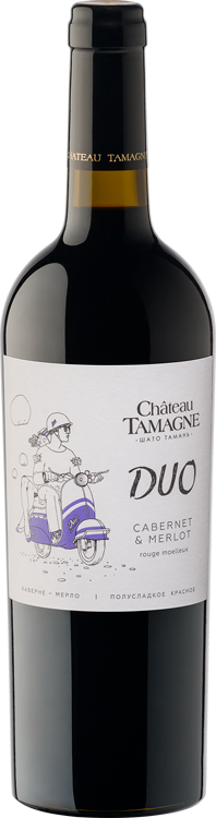 Вино с ЗГУ «Кубань. Таманский полуостров» полусладкое красное «Шато Тамань Duo» - хороший пример ориентированности на вкусы и предпочтения клиентов винодельни «Кубань-Вино». Специально вошло в серию для тех, кто предпочитает сухим винам сладкие. Приготовлено по классической технологии из отборного винограда сортов Каберне и Мерло, собранного на собственных виноградниках агрофирмы «Южная» Таманского полуострова Краснодарского края. Цвет от красного до тёмно-красного, с рубиновым или гранатовым оттенком. Аромат сложный, фруктовый с фиалковыми тонами. Вкус свежий, мягкий, гармоничный.